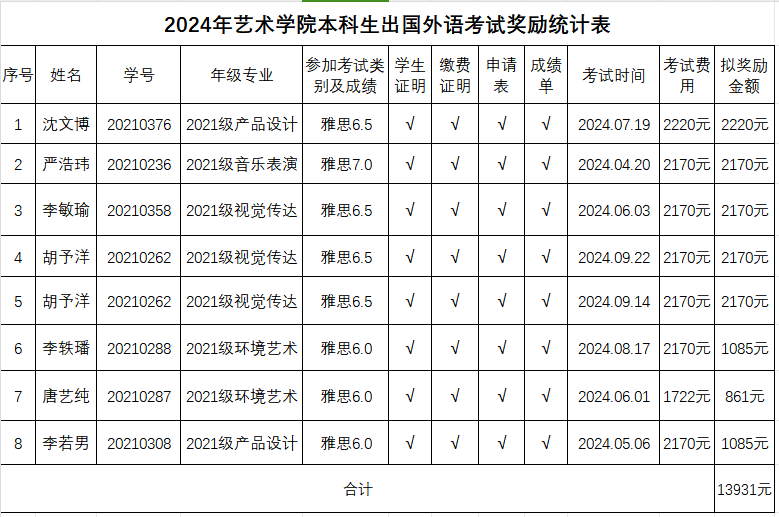 经学生本人申请,评审小组依据办法对申请材料进行审核,学院分管领导审定,以下8名同学符合奖励条件,现予公示。