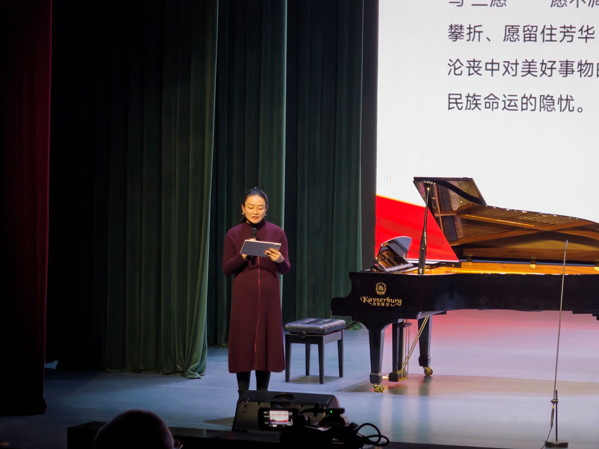 重庆大学“周周艺起来”2025—2026学年第三期(总第103期)专场活动——“长城谣”抗战大后方的中国艺术歌曲音乐会于2025年11月29日19:30在科学城校区虎溪校园小剧场成功举办。音乐会不仅是一次成功的艺术实践,更是一堂生动的爱国主义教育课,让在场师生在音乐中重温历史,汲取了昂扬向上的精神力量。