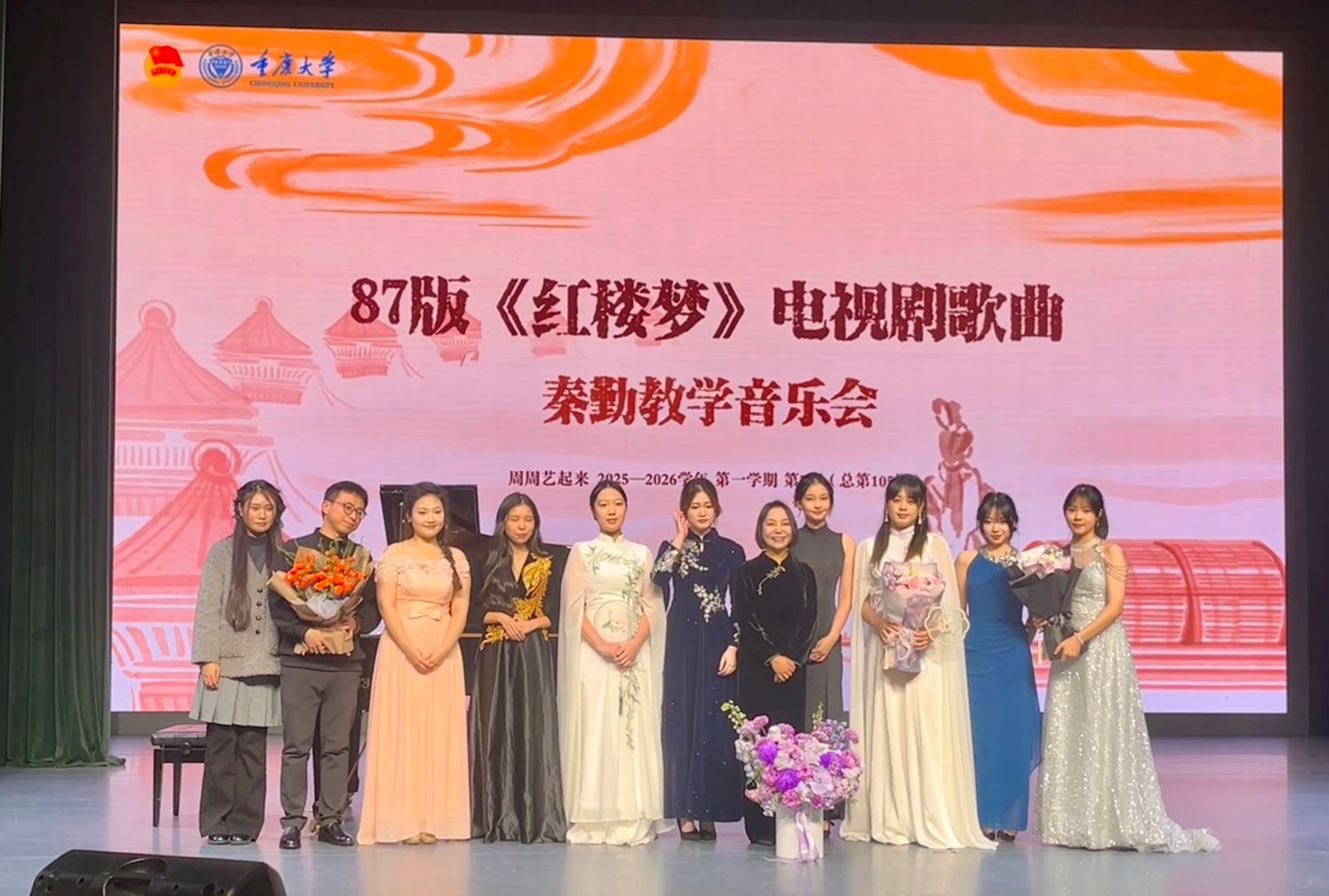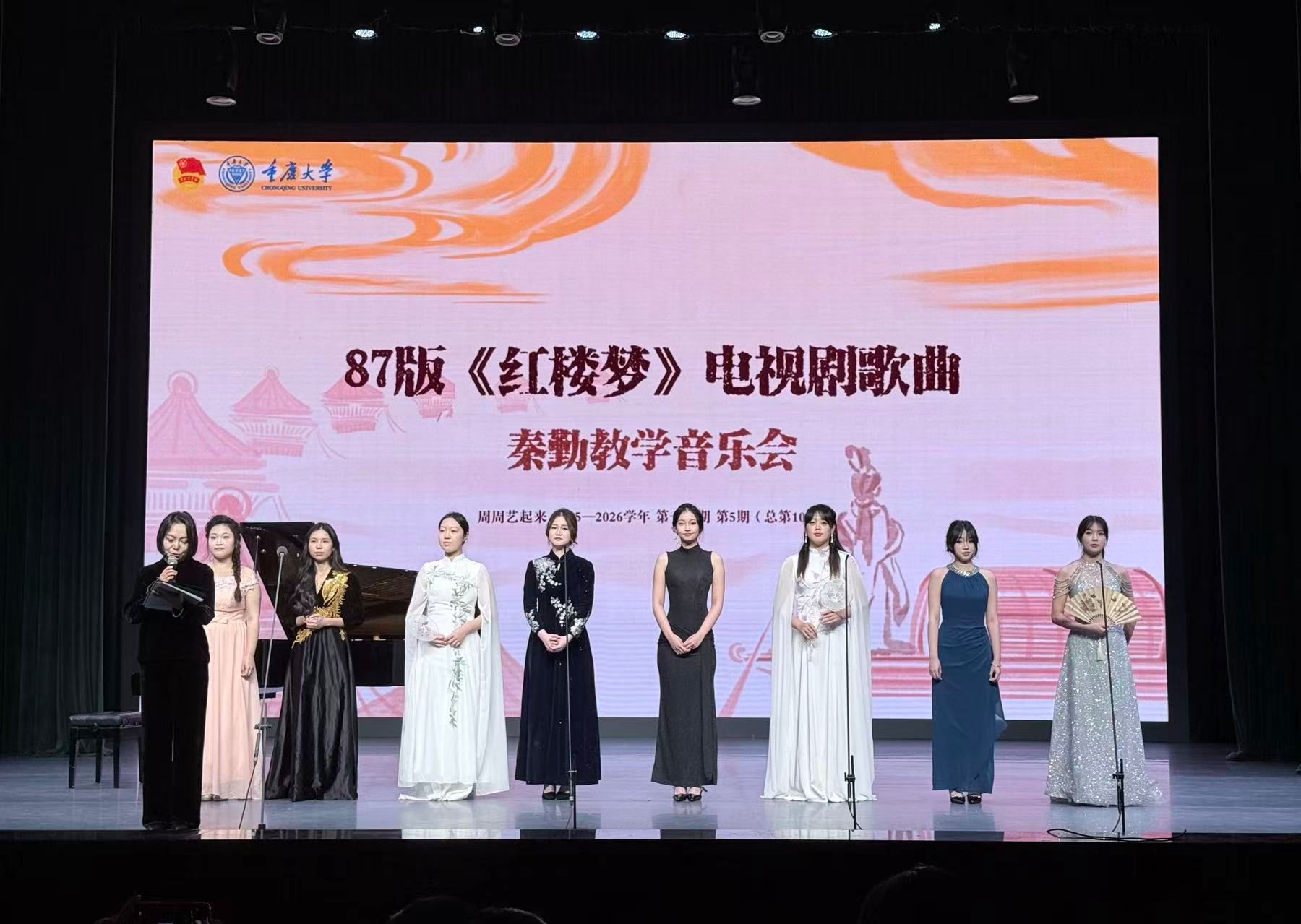 为传承中华优秀传统文化,涵养师生古典美学情怀,2025—2026学年第5期(总第105期)重庆大学“周周艺起来”经典回放之“梦回红楼”——《红楼梦》主题歌曲音乐会,于12月5日晚在虎溪校园小剧场上演。