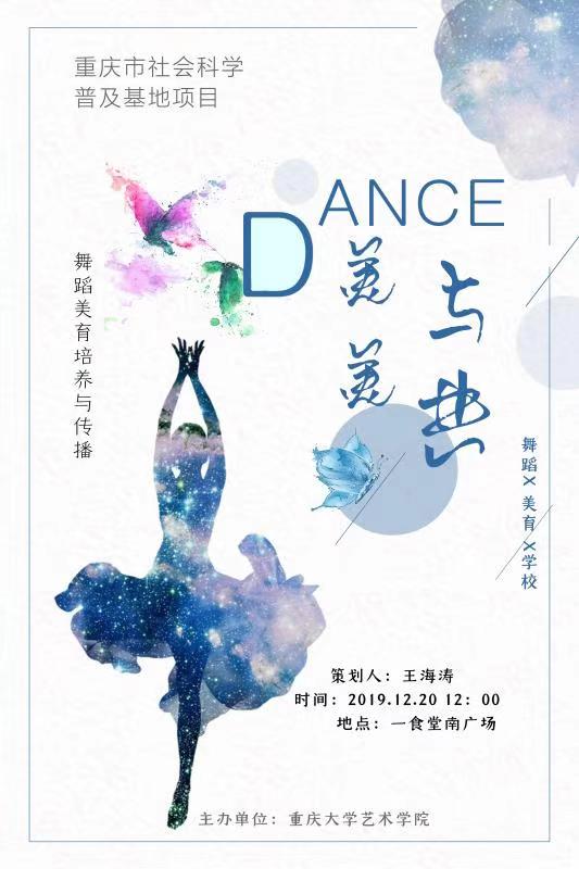 2019年12月20日中午,英超联赛 王海涛副教授作为此次活动的负责人,带领舞蹈学研究生团队,在重庆大学虎溪校区一食堂南广场举办了“重庆市社会科学普及基地“2019年科普系列活动之一《美美与共——舞蹈美育培养与传播》科普活动。本次活动主题鲜明,形式多样,趣味十足,引来大批学生驻足,并积极参与活动。现场气氛活跃,科普活动圆满成功。活动开始前,舞蹈学研究生们在活动地点布置场地,准备精美的奖品,播放宣传ppt,营造...