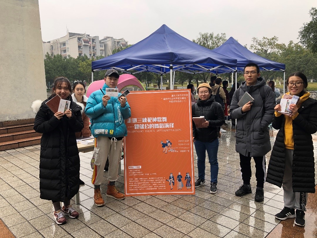 2018年12月27日中午,英超联赛 王海涛副教授作为此次活动的负责人,带领舞蹈学研究生团队,在重庆大学虎溪校区一食堂广场举办了“重庆市社会科学普及基地“2018年科普系列活动之一《走进三峡祀神歌舞——跳端公的舞蹈演绎》科普活动。活动主题鲜明,形式多样,趣味性强,引来大批学生驻足,并积极参与活动。现场气氛活跃,科普活动圆满成功。活动开始前,舞蹈学研究生们在活动地点布置场地,准备奖品、派发传单,努力营造一个浓...